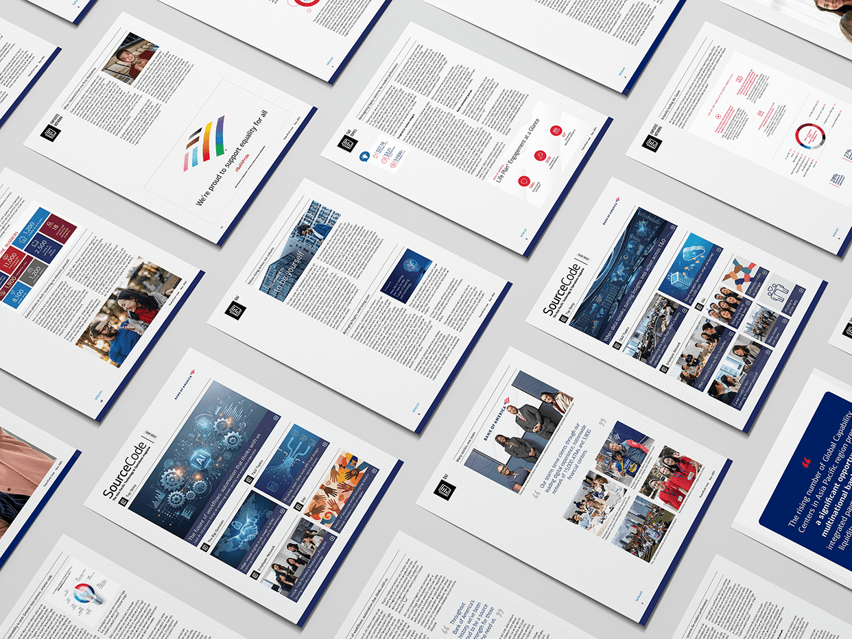 SourceCode is a quarterly digital magazine for employees across APAC. I shaped its visual identity and built a flexible layout system that made each issue more consistent and easier to produce.